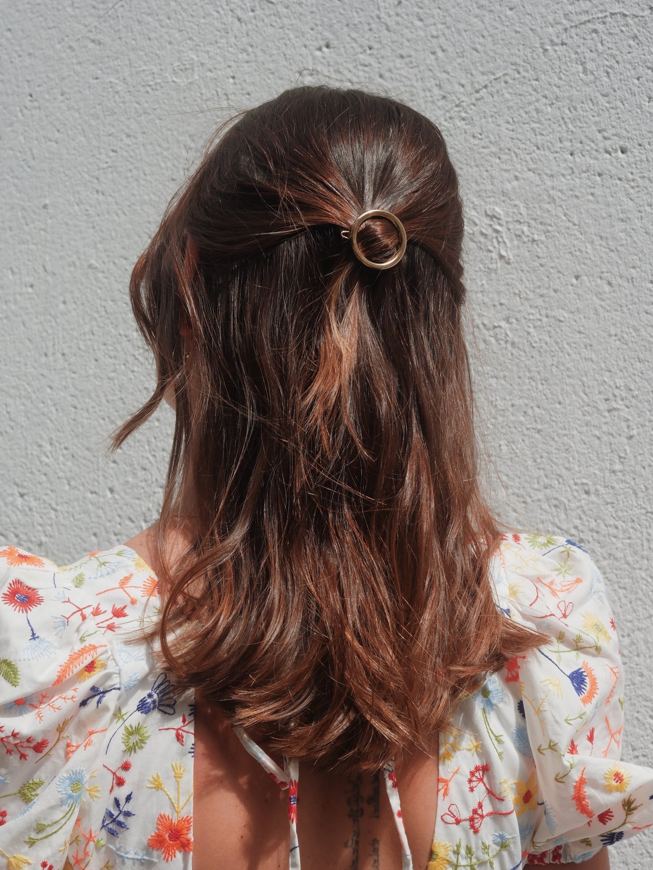 Alice est une barrette ronde. On peut l'attacher en demi-queue ou en couette basse sur cheveux fins avec le plus grand modèle